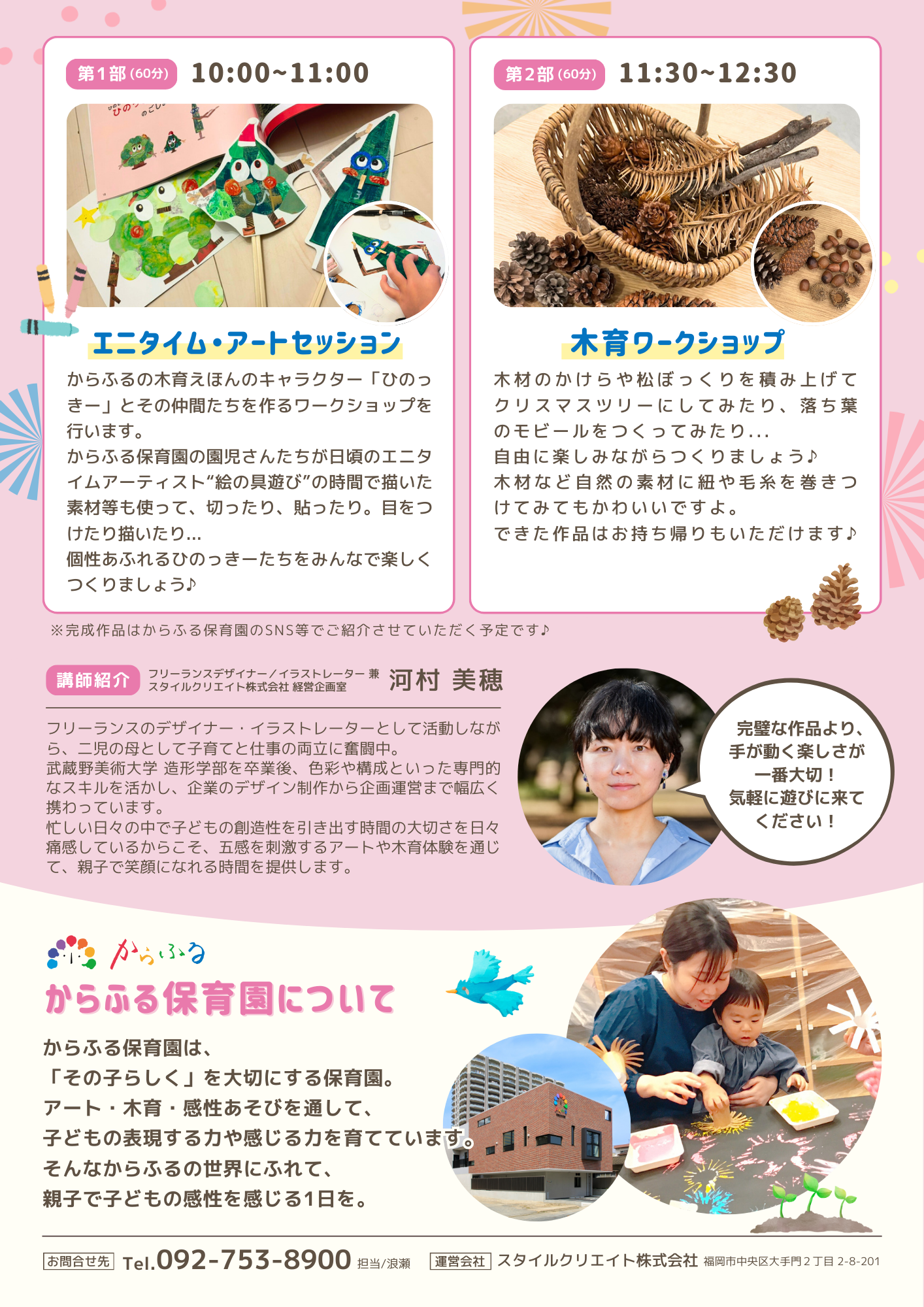 2025.11.20 【参加無料】12月開催 親子体験教室のお知らせ【Kids Creative Room からふる】